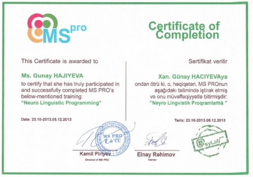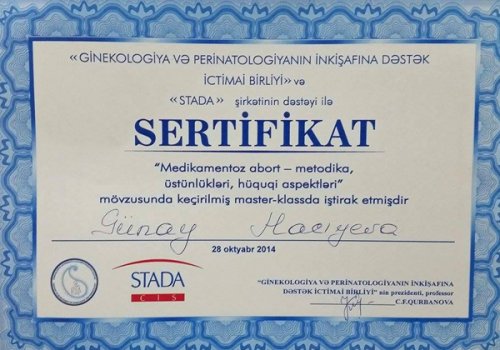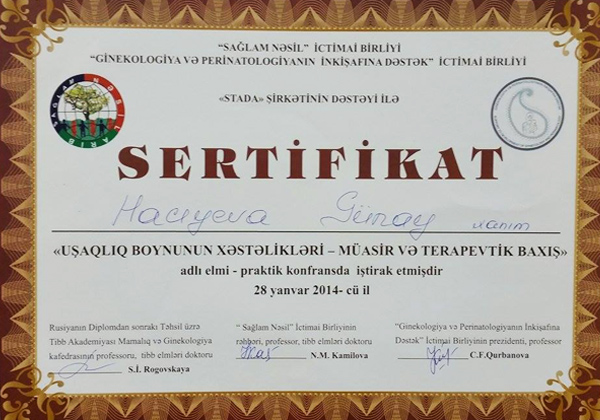 - "Estetik Ginekologiyada Plazmanın Nativ və Gel Formasının İstifadəsi” - kursu.