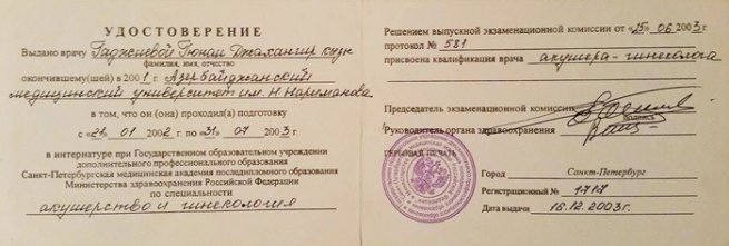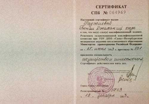 Rusiya, Sankt Peterburq Diplomdansonrakı Tibb Akademiyasında Mama Ginekokoq ixtisasını almış və Leninqrad Vilayeti Xəstəxanasında (Ленинградская Областная Больница)