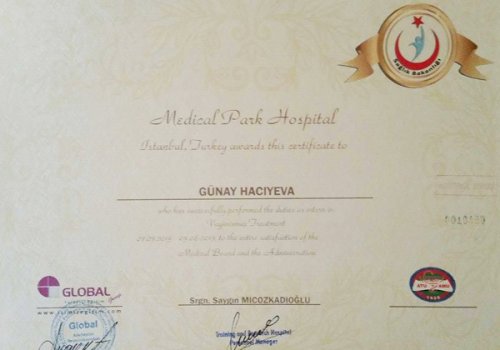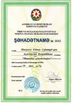 22 ildir iş təcrübəsi olan mama-ginekoloq Günay Hacıyeva çalışdığı müddət ərzində çox sayda xəstələrə şəfa vermiş, sonsuzluqla , hormonal pozğunluqla, hamilələrin doğuşa çatdırılmasını o cümlədən çox sayda vaginizm xəstələrini müalicə etmiş və onların doğuşunu həyata keçirmişdir. Hal-hazırda mama-ginekoloq Günay Hacıyeva Vaginizmin Müasir Müalicəsi, labioplastika, vaginanın daraldılması əməliyyatı (arxa və ön kolporrafiya), Kesar əməliyyatı , Histeroskopik əməliyyatlar , qadın sonsuzluğu ( uşaqlıqdaxilili faktorlar, uşaqlıq borusu faktorları), hormonal pozğunluq, ginekoloji xəstəliklərin müalicəsi, patoloji və normal hamiləliyin təqibi, eləcədə doğuşa çatdırılması və s. ilə sizin xidmətinizdədir.