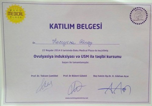 - "Ovulyasion induksiya, Oosit toplama, Embrio Transferi və Pasientin İdarə edilməsi” - İVF KURSU