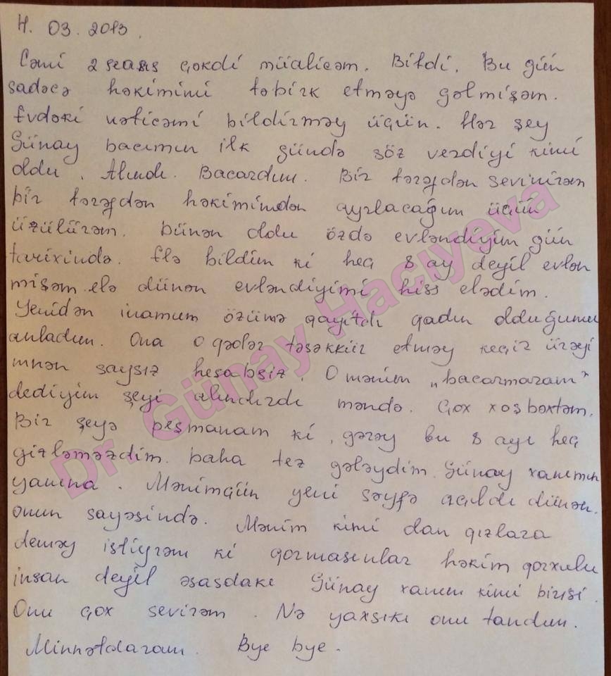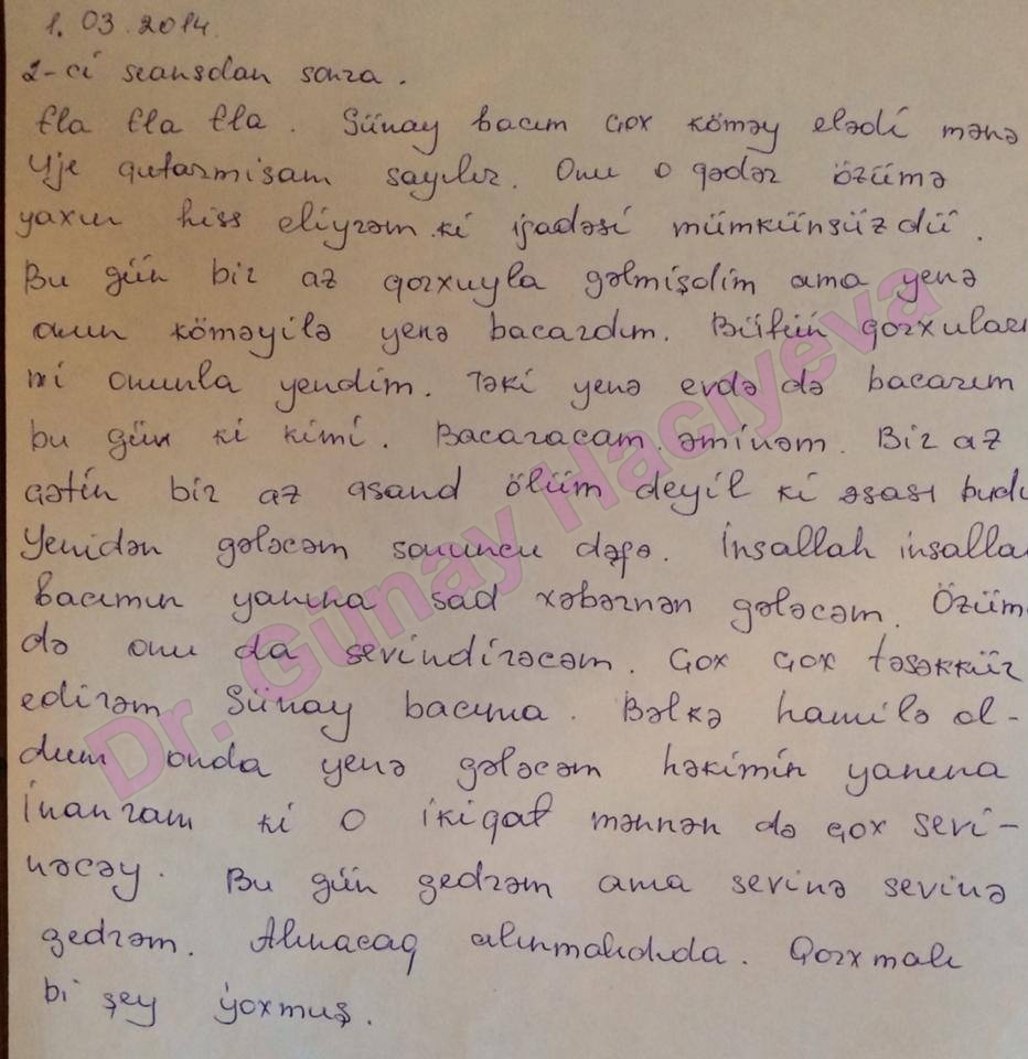 Bu xəstəm 8 aydır evlidir və vaginizmlə bağlı Bakıdan müraciət etdi. Yaşadığı digər qorxusu tək qalmaqdır. Müalicəmiz 2 seansa bitdi. Müalicə sırasında özünün yazdığı duyğuları: