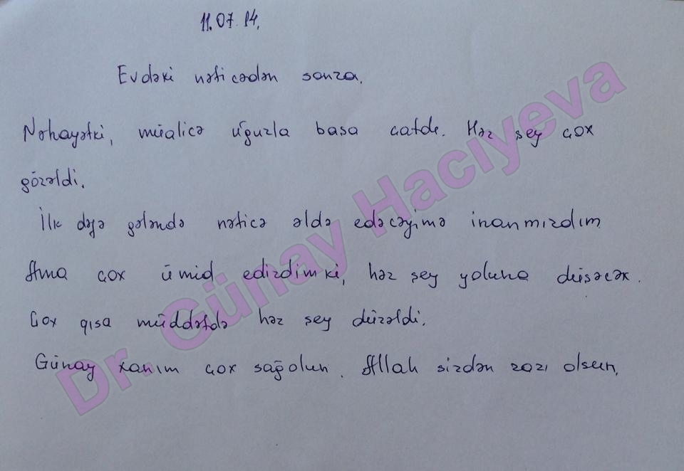 Bakıdan müraciət edən bu pasientimiz isə 9 ayın vaginizmi idi. Onun yaşadığı qorxular böcək, iynə və yüksəklik idi. Müalicəmiz 2 seansa( 2 günə) bitdi :